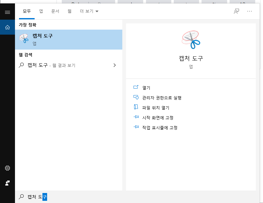 프로그램을 따로 설치하지 않으면, Windows에 기본 캡처 사용합니다.