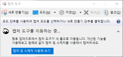 2. 원하는 영역을 선택하여 캡처 (이 화면은 캡처가 안되기 때문에 이미지를 첨부하지 않았습니다.)
