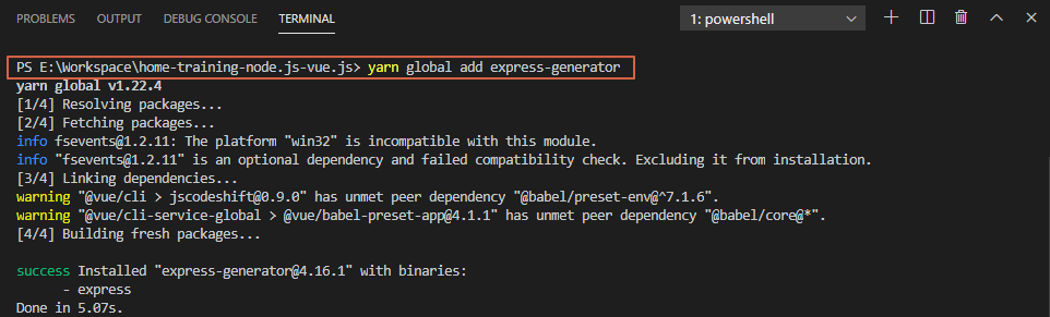 5.1. Yarn을 이용하여 Express Generator 설치하는 경우