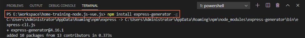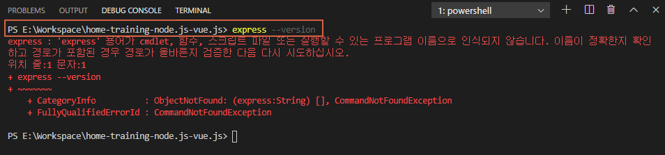 4. Express Generator 설치 여부 확인을 위해 아래의 명령어 실행