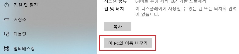 3. 이 PC의 이름 바꾸기 버튼을 클릭합니다.