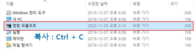 2. 보통 명령 프롬프트는 이미 바로 가기 경로로 설정되어 있습니다. 바로 가기인 경우 명령 프롬프트를 복사합니다. 복사 단축키 [Ctrl + C]
