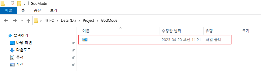 3. 그러면 이름이 없는 God Mode(갓 모드)가 생성된 것을 확인할 수 있습니다.