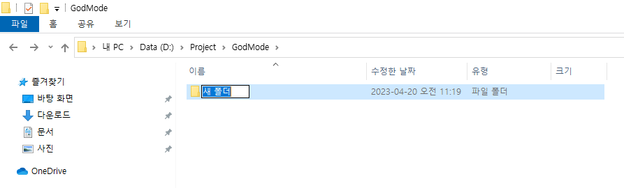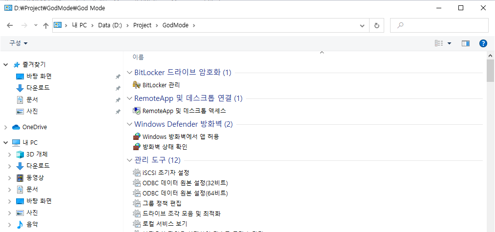 [TIP] Windows 10 God Mode(갓 모드) 만들기Windows/TIP 2023. 4. 20. 11:33