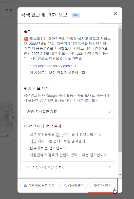 3. 우측 하단의 [저장된 페이지] 버튼을 클릭합니다.