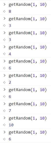 getRandom(1, 10)1~10 사이의 랜덤한 정수를 가져오는 것을 확인하기 위한 테스트 코입니다.
