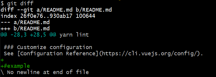 3. git diff 명령어로 수정된 파일의 내용을 확인합니다.