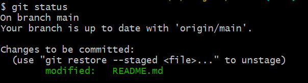 git add README.md5. git status 명령어로 상태를 확인합니다.